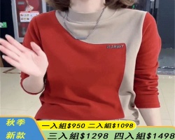 NT$1589金絲絨提花上衣來啦~高貴顯氣質,洋氣減齡,寬鬆大碼,遮肉顯瘦,休閒舒適,時尚百搭喲詳情 - 德絨撞色打底衫NT$950