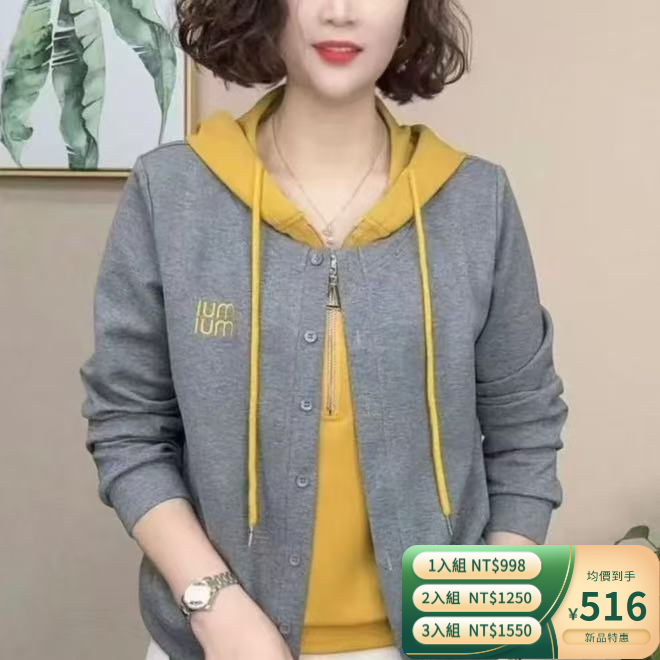 NT$12982025新款早秋 刺繡假兩件 時尚設計感休閒開衫 洋氣長袖連帽衛衣 時尚百搭 多色可選詳情 - 金絲絨提花上衣NT$998
