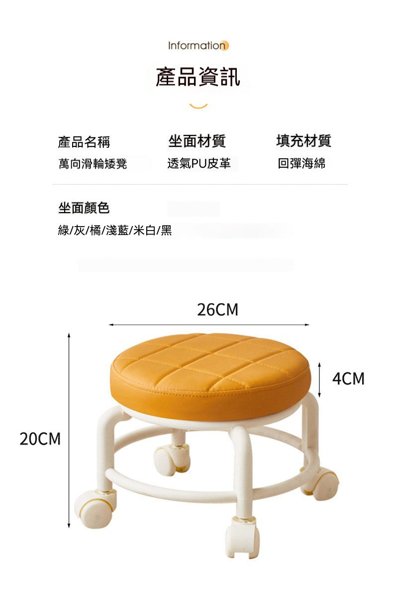 2分鐘前[4]【萬向輪小圓凳】4入組,僅需NT$1450